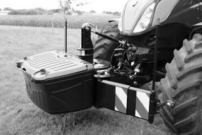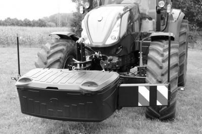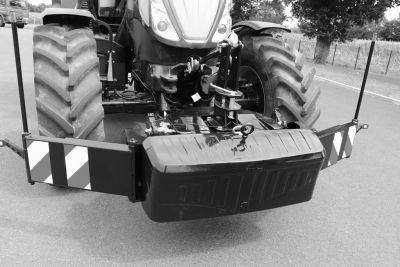 Steel bumper to be mounted on cast iron B-serie 600 to 2500kg weights, to avoid the embedding of the other vehicule underneath the tractor, and to make a substantial contribution to reducing the severity of injury in the event of a crash