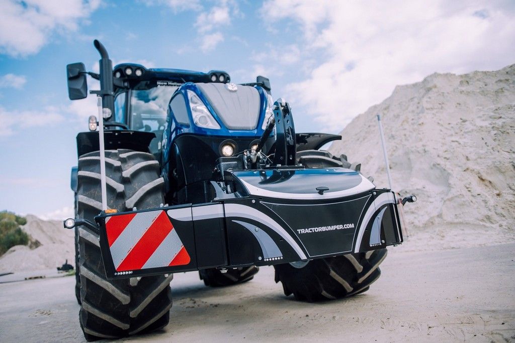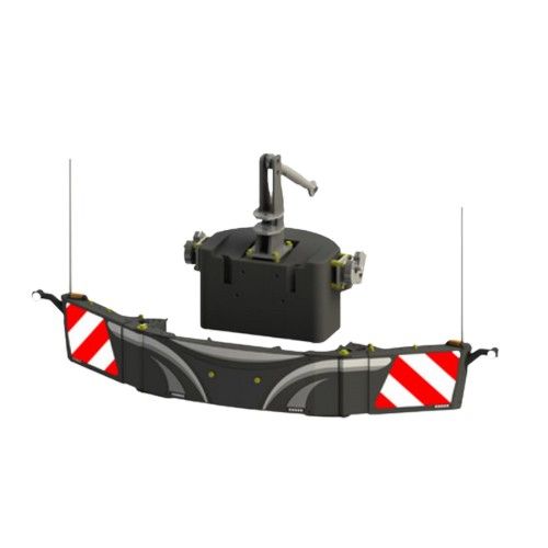 - Tractor-Bumper Safety Weight To be mounted on the front linkage, with 45L integrated storage space and 600 to 2500kg weights Adjustable wing width from 2.3 to 2.8m (weight from 600 to 1100kg) and 2,6 to 2,8m (weight from 1300 to 2500kg)